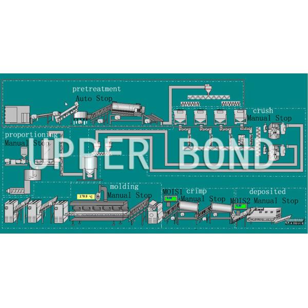The system mainly consists of defibrator, sugar material pot, proportion pot, glue storage pot, liquid material conveying and measurement system. It can finish the functions of the stem defibration, liquid material measurement, proportion, storage and conveying etc..